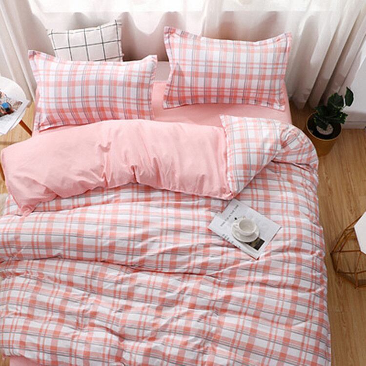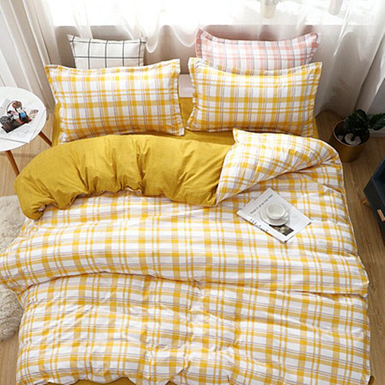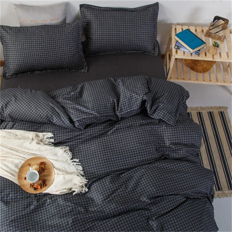 ドミトリーベッド シングル 4点セット 格子縞 掛け布団カバー 3点セット
